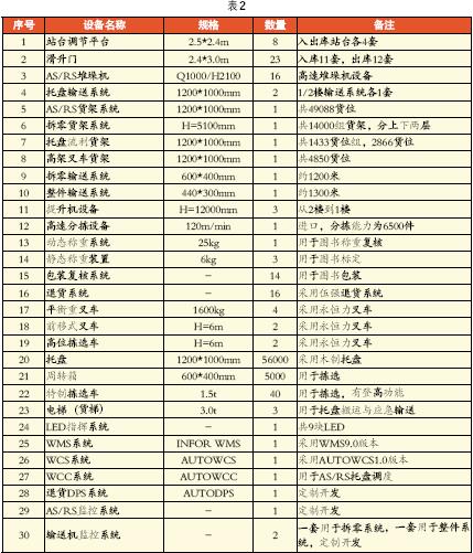為了達(dá)到設(shè)計要求,配送中心配置了大量現(xiàn)代物流設(shè)備,并采用世界著名的物流信息系統(tǒng)INFOR WMS和企業(yè)管理系統(tǒng) SAP R/3。其中主要的設(shè)備配置如表2。