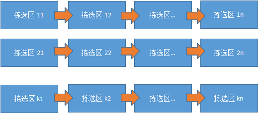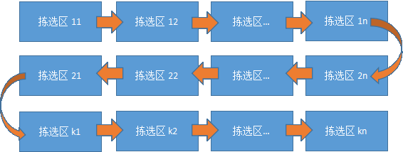 此外,對(duì)于揀選路線很長(zhǎng)的情形,采用并行揀選,會(huì)有利于減少運(yùn)輸時(shí)間,并簡(jiǎn)化設(shè)計(jì)路線。