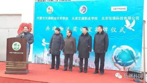 2016年1月15日,天津交通職業(yè)學(xué)院、內(nèi)蒙古交通職業(yè)學(xué)院、北京伍強科技有限公司三方在內(nèi)蒙古交通職業(yè)學(xué)院舉行“校-企-?!甭?lián)合建設(shè)物流實訓(xùn)室的揭牌儀式。內(nèi)蒙古交通職業(yè)學(xué)院黨委書記劉力山、院長尚慶華、副院長王建軍,天津交通職業(yè)學(xué)院院長吳宗保、首席專家薛威教授,北京伍強科技有限公司總裁尹軍琪以及其他領(lǐng)導(dǎo)和師生60多人參加了揭牌儀式。