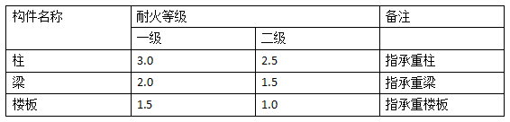 關于構(gòu)件的耐火等級,應符合如下表的要求(參見《建筑設計防火規(guī)范》表3.2.1):