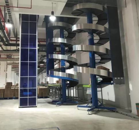 螺旋提升機被認為是最緊湊的提升機設(shè)備之一,且技術(shù)成熟,故障率低,運行平穩(wěn)。尤其是其輸送量大,每小時可以完成1500件以上的貨物輸送,解決了其它類型提升機跨樓層運輸能力不足的問題。在伍強智能科技的案例中,也有10年以上的應(yīng)用。本配送中心項目充分利用螺旋提升機的特點,完成整件貨物和打包后的貨物從2~4樓到達一樓的快速輸送,成為項目的亮點之一。
