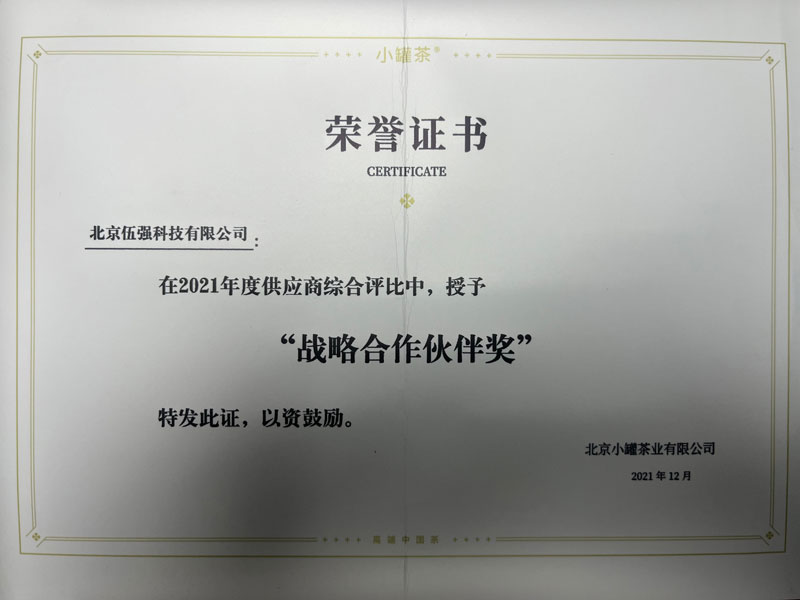 由伍強(qiáng)總集成的小罐茶黃山工廠是目前中國茶行業(yè)規(guī)模最大、功能最全、設(shè)施最先進(jìn)、配套最完善的超級工廠。近日,伍強(qiáng)獲得了小罐茶客戶授予的“戰(zhàn)略合作伙伴獎(jiǎng)”。表達(dá)了小罐茶對伍強(qiáng)的高度認(rèn)可,對項(xiàng)目組成員的高度贊揚(yáng)。